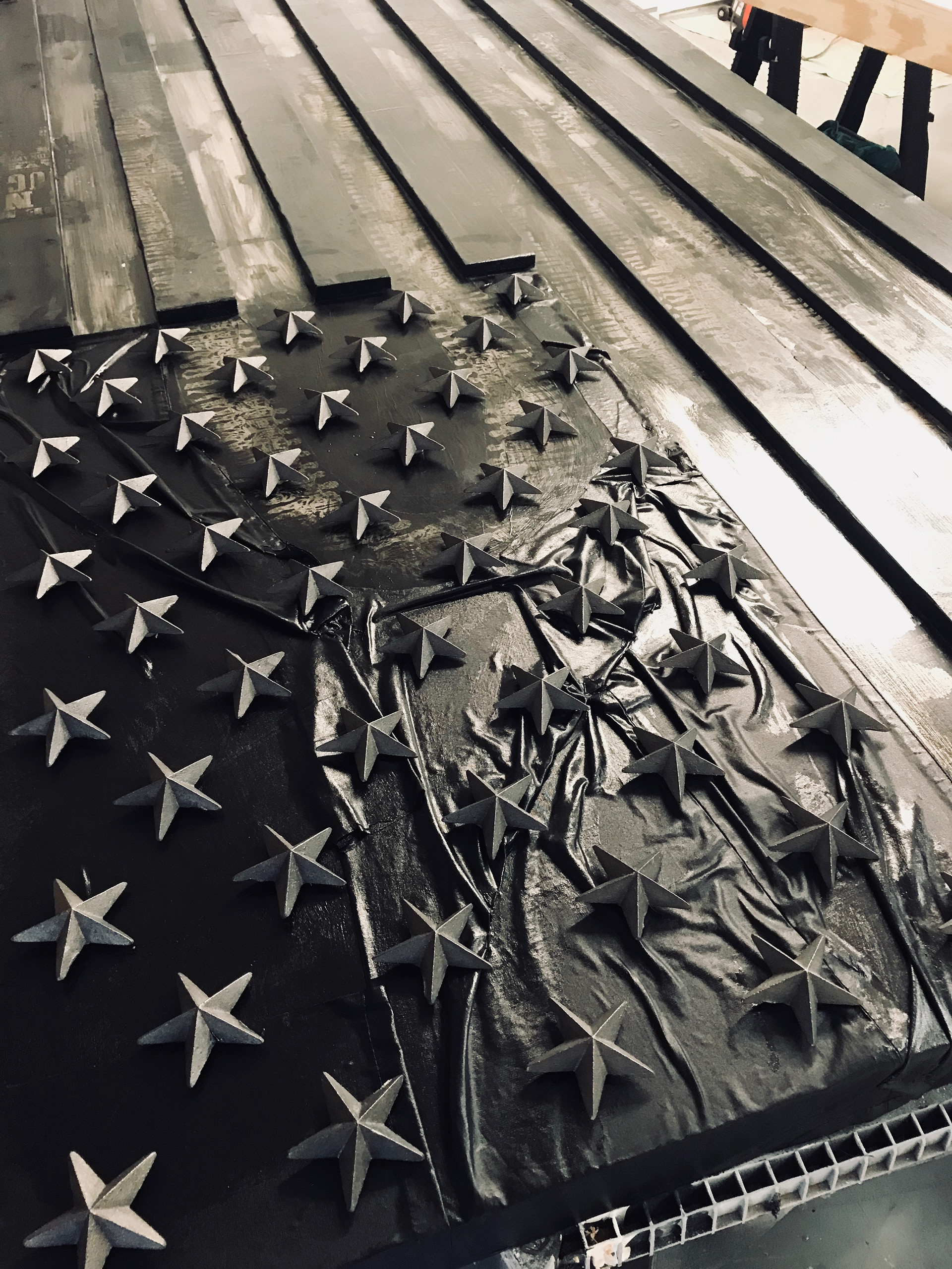 45.5" X 96" / Wood, paint, mixed media and cast iron stars