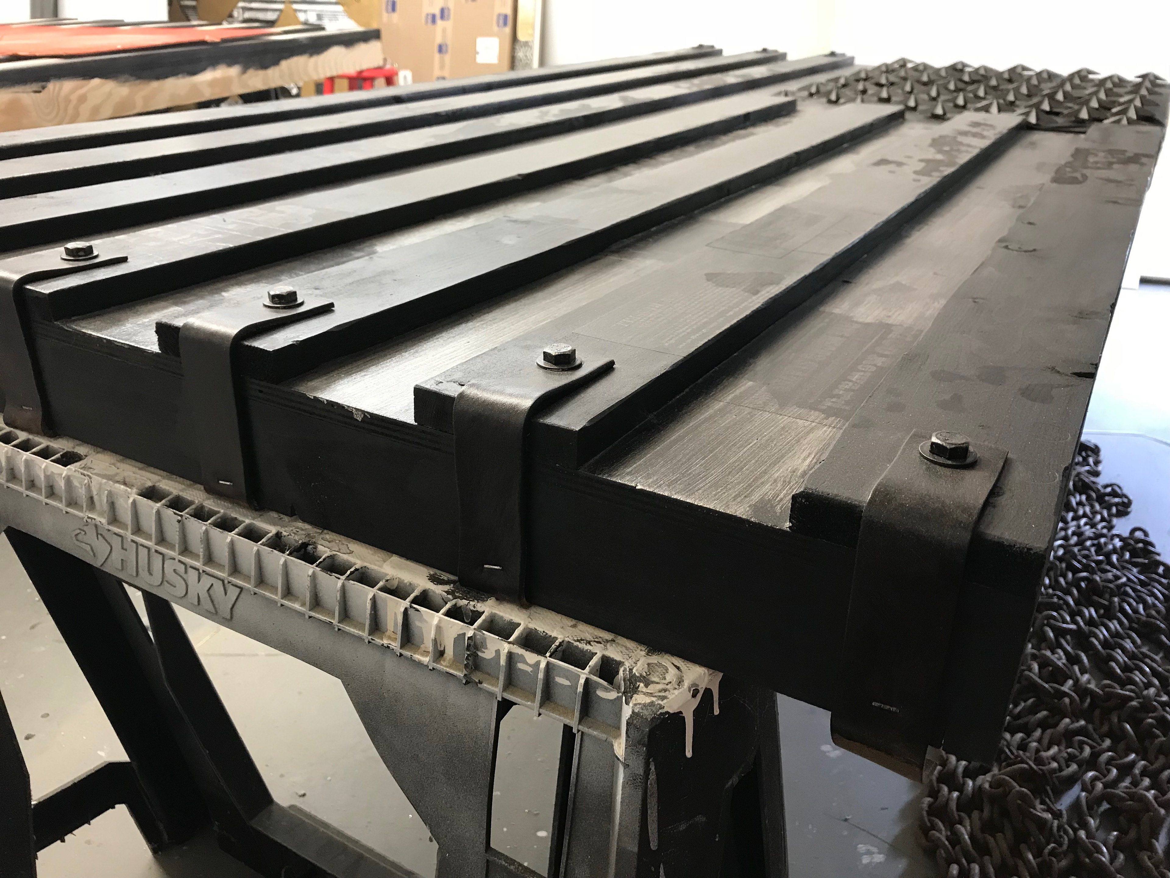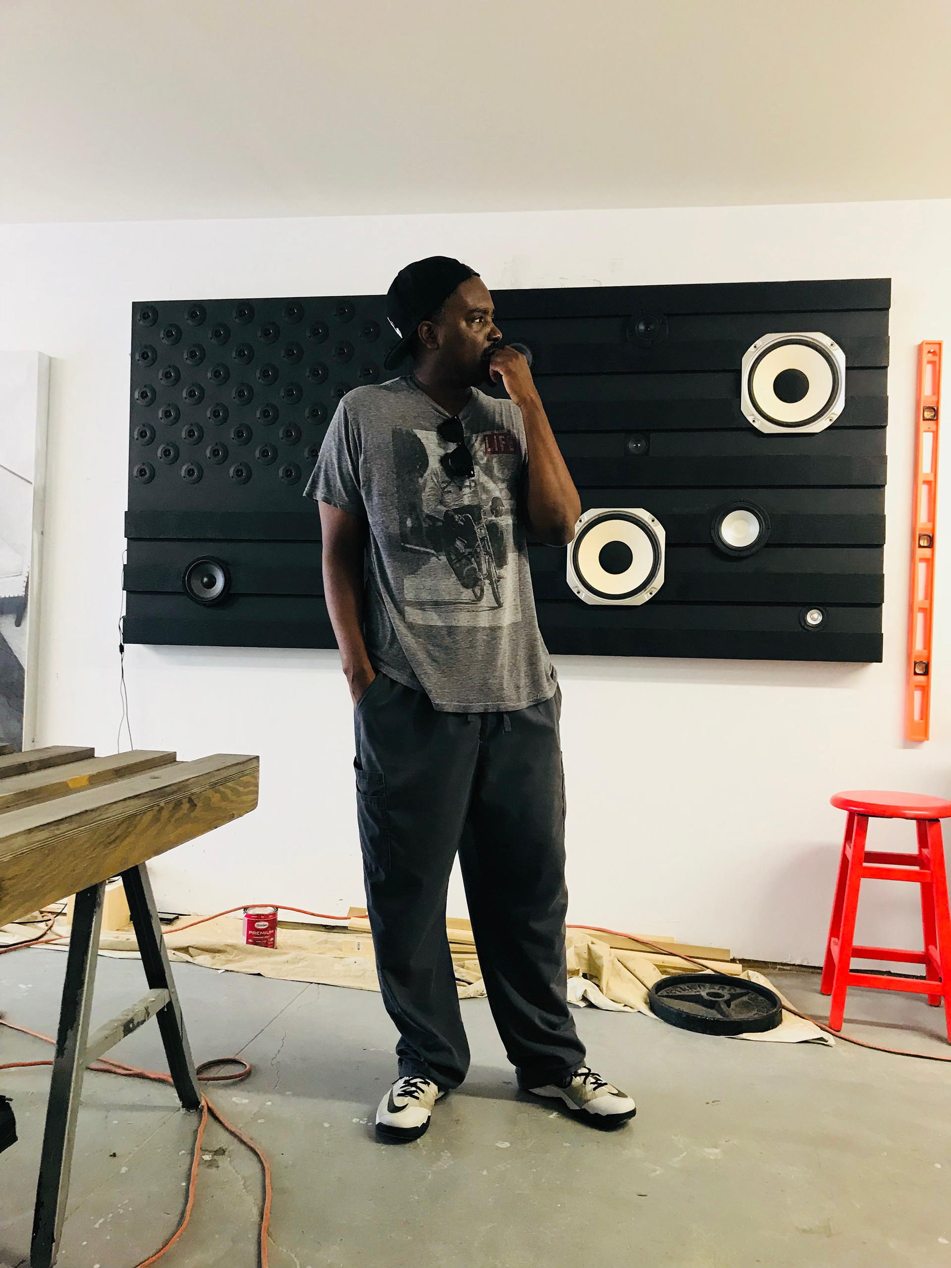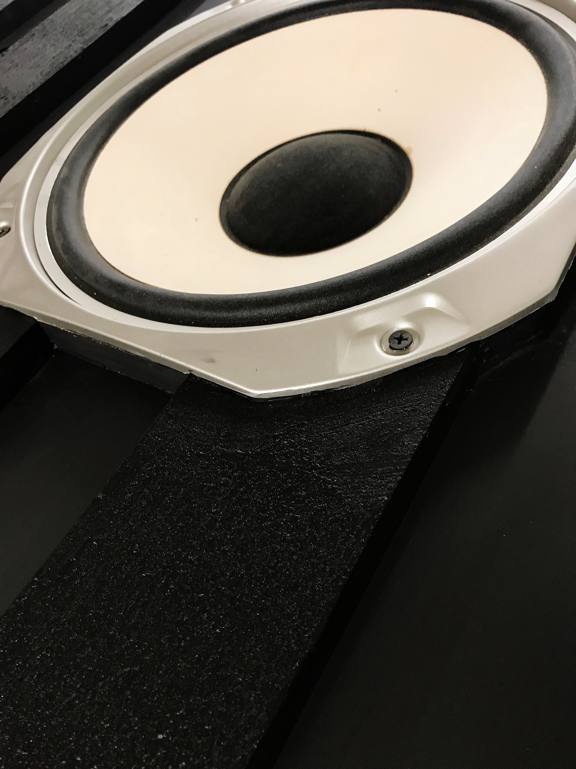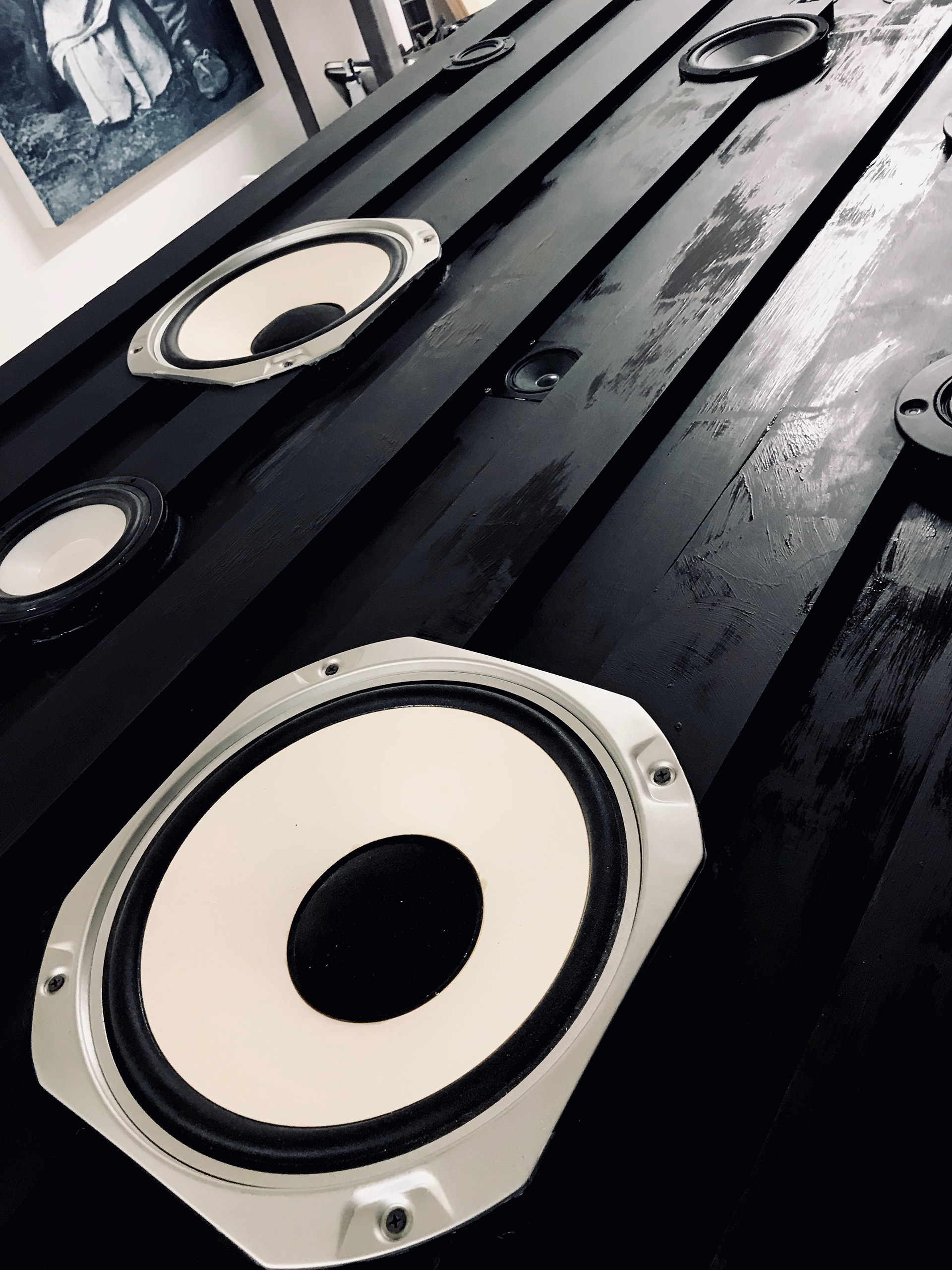 45.5" X 96" / Wood, black concrete paint, functioning speakers, Bluetooth technology