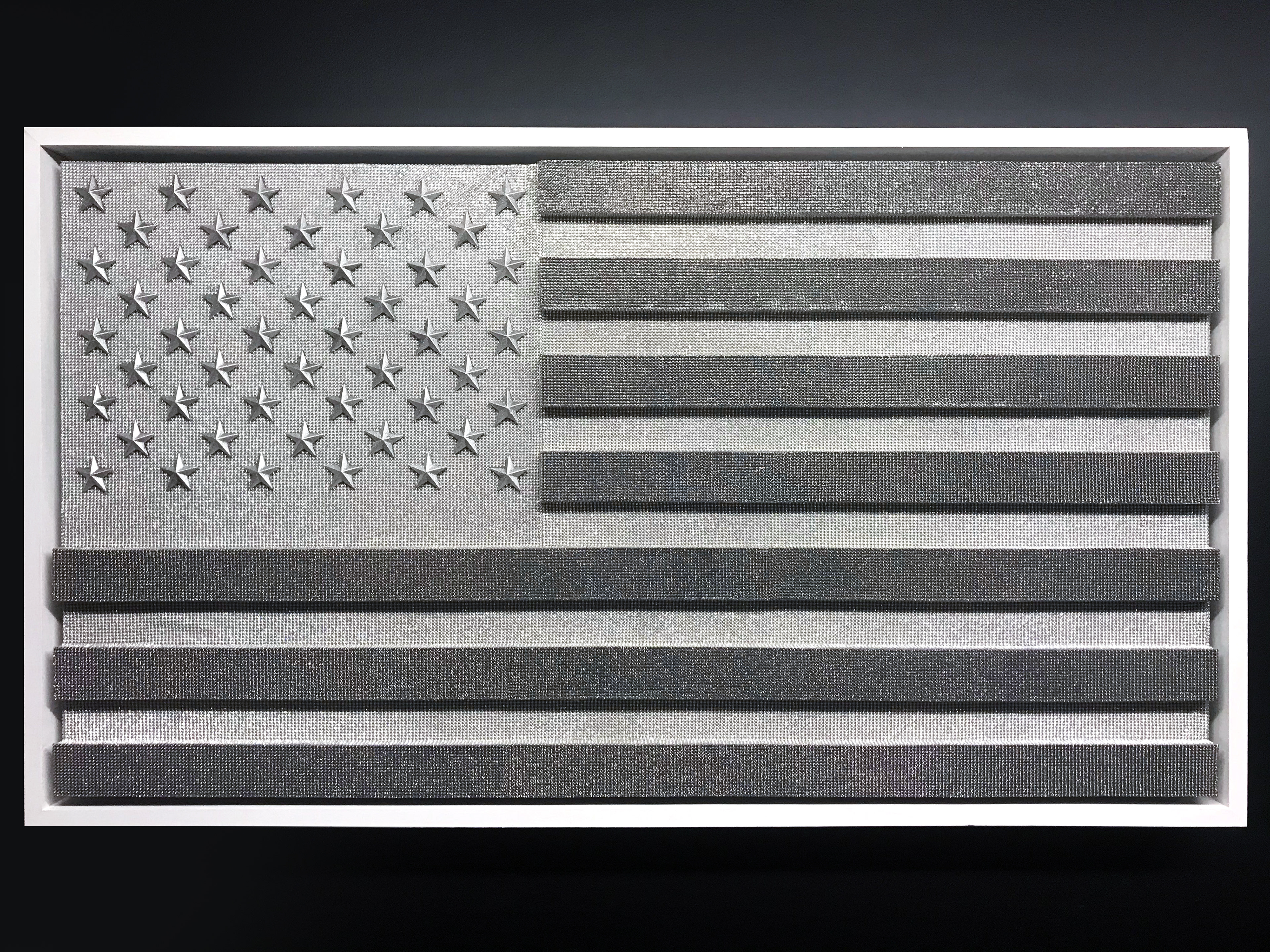 AMERICAN FIGHTERS / 24" x 48" / Mixed media, acrylic and sculpted flag on wood panel covered in diamond dust.