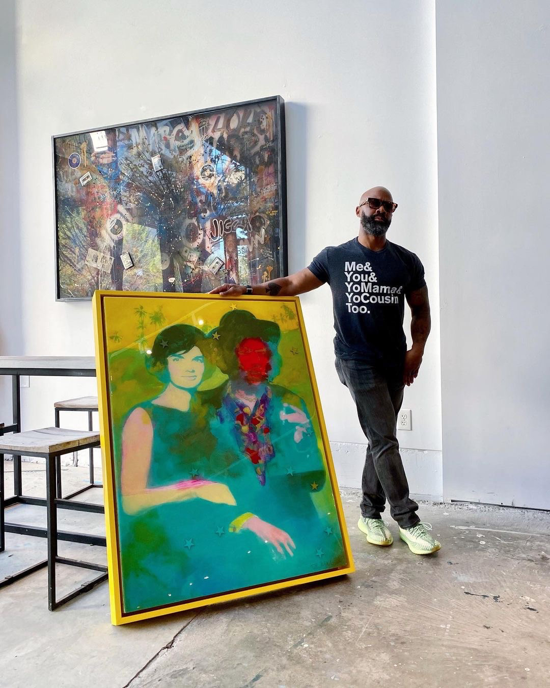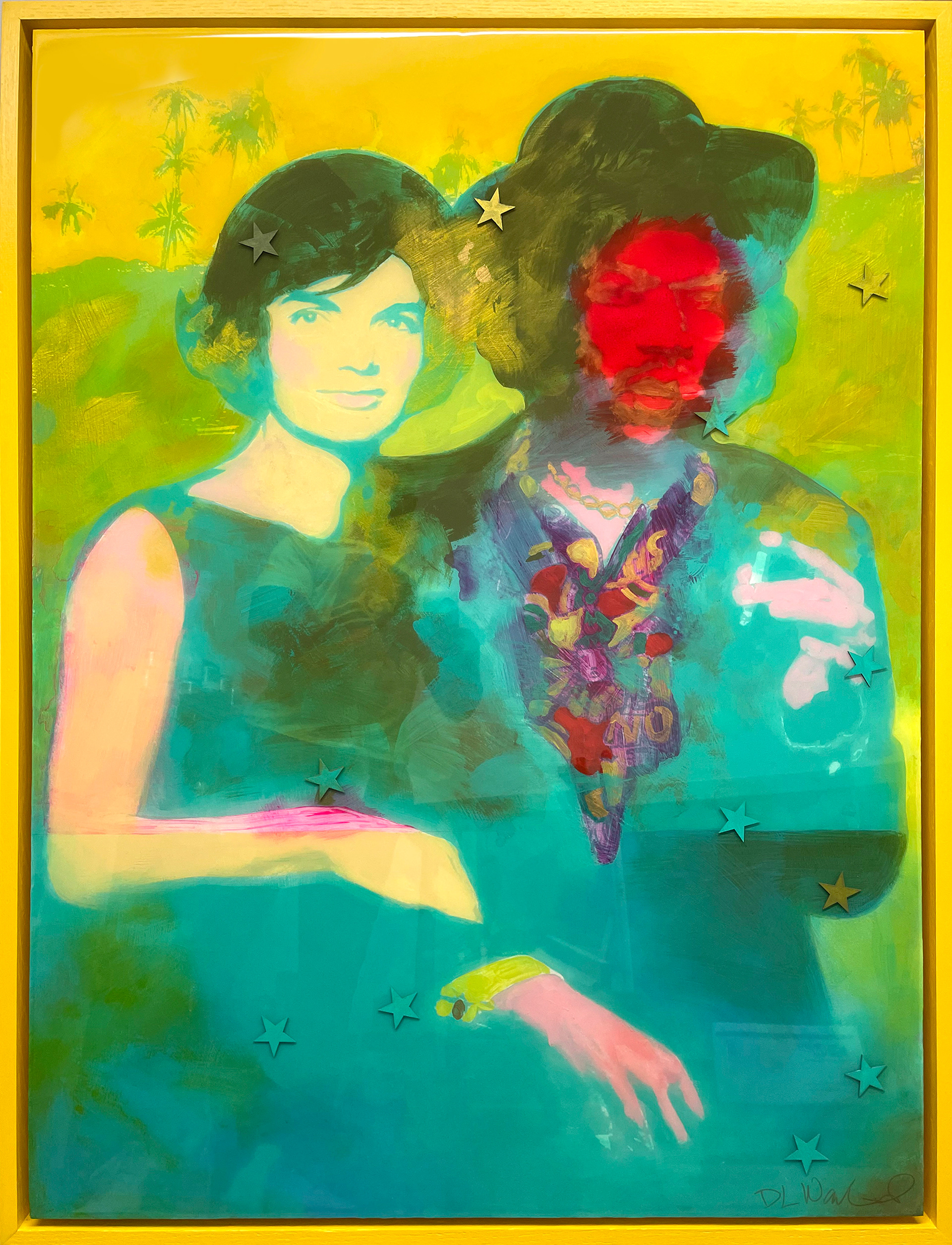 FEARLESS / 30" x 30" / Oil, acrylic, custom neon letters on wood panel covered in resin